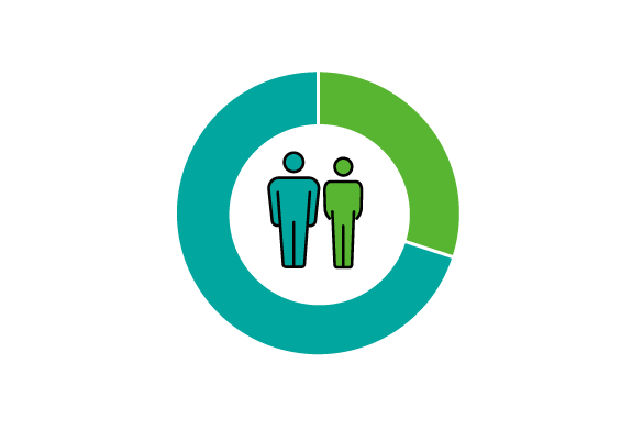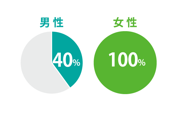 2024年度、男女別の育児休業取得者の比率です。 男女合わせて対象7名のうち、4名が育児休業を取得しました。女性の取得率は、100%でした。