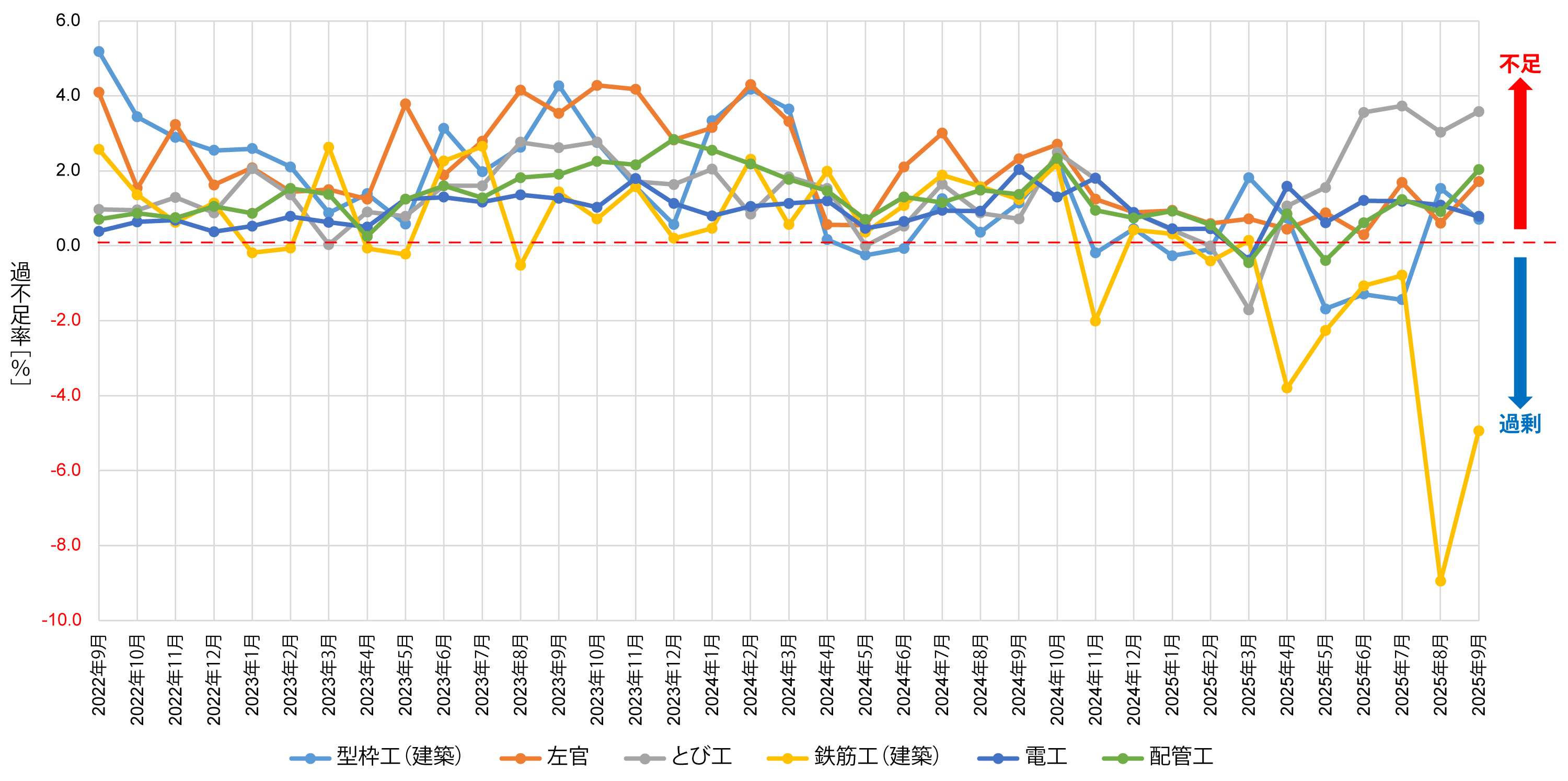 出典:国土交通省建設労働需給調査